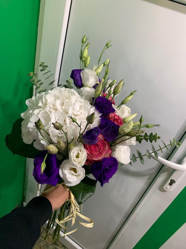 Buchet Trandafiri Alb, Lalele, Eucalipt.
