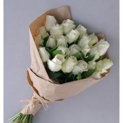 Buchet Trandafiri Alb, Lalele, Eucalipt.