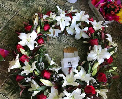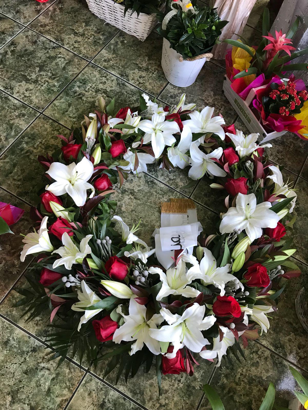Coroana Funerara Crin Alb Trandafiri Rosii Ecuador
