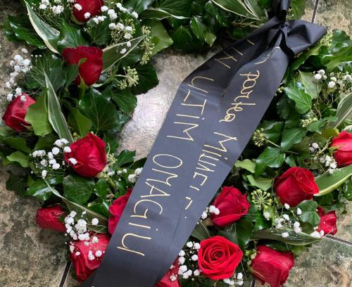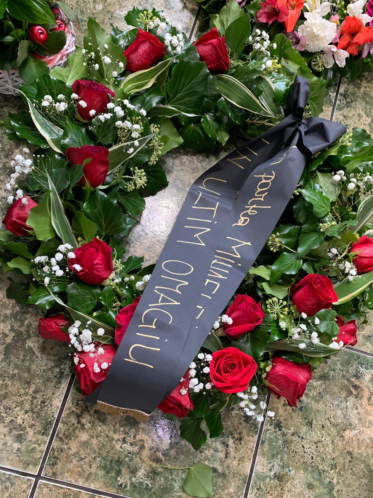 Coroana Funerara Crin Alb Trandafiri Rosii Ecuador